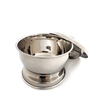 Shaving Bowl with Handle and Lid made entirely of Chrome Steel with a handle for a comfortable grip and a lid to keep the lather.